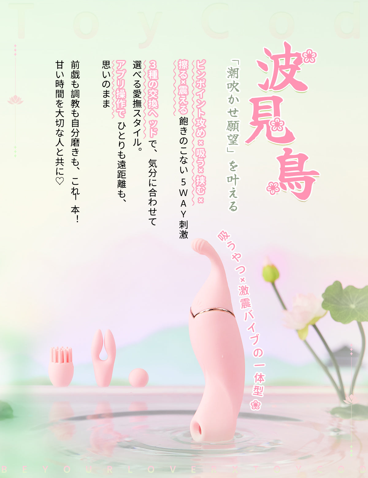 ToyCod 波見鳥 潮吹きバイブ ピンポイント×吸引×激震×遠隔 3種交換ヘッド ラブグッズ